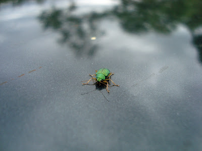 Em cima da caminhonete, olha só o que encontramos: um belo besourinho! A Ordem Coleoptera, que reúne todos os besouros, é a que possui o maior número de espécies dentre os seres vivos. São cerca de 350 mil!