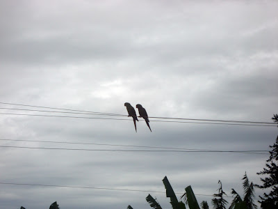 Na fazenda, o céu escuro não me impediu de registrar esse lindo casal de jandaias, aves muito comuns por ali.